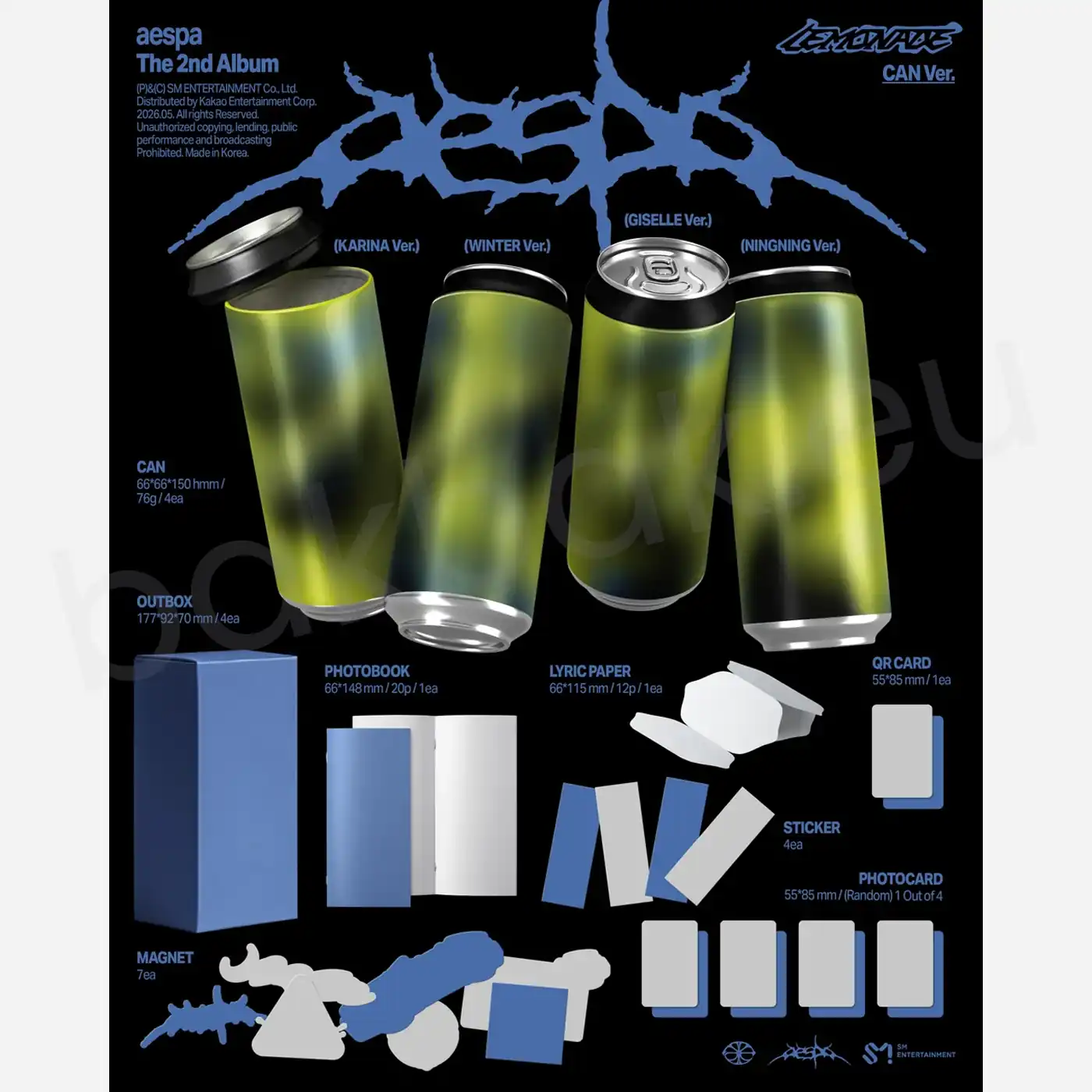 aespa is a four-member girl group under SM Entertainment consisting of KARINA, GISELLE, WINTER, and NINGNING. LEMONADE is their highly anticipated 2nd Full Album, releasing on May 29, 2026 — the follow-up to their critically acclaimed debut full album Armageddon (2024). The album features 10 tracks spanning various genres, expanding aespa’s signature high-concept narrative into a bolder and more mature musical direction.