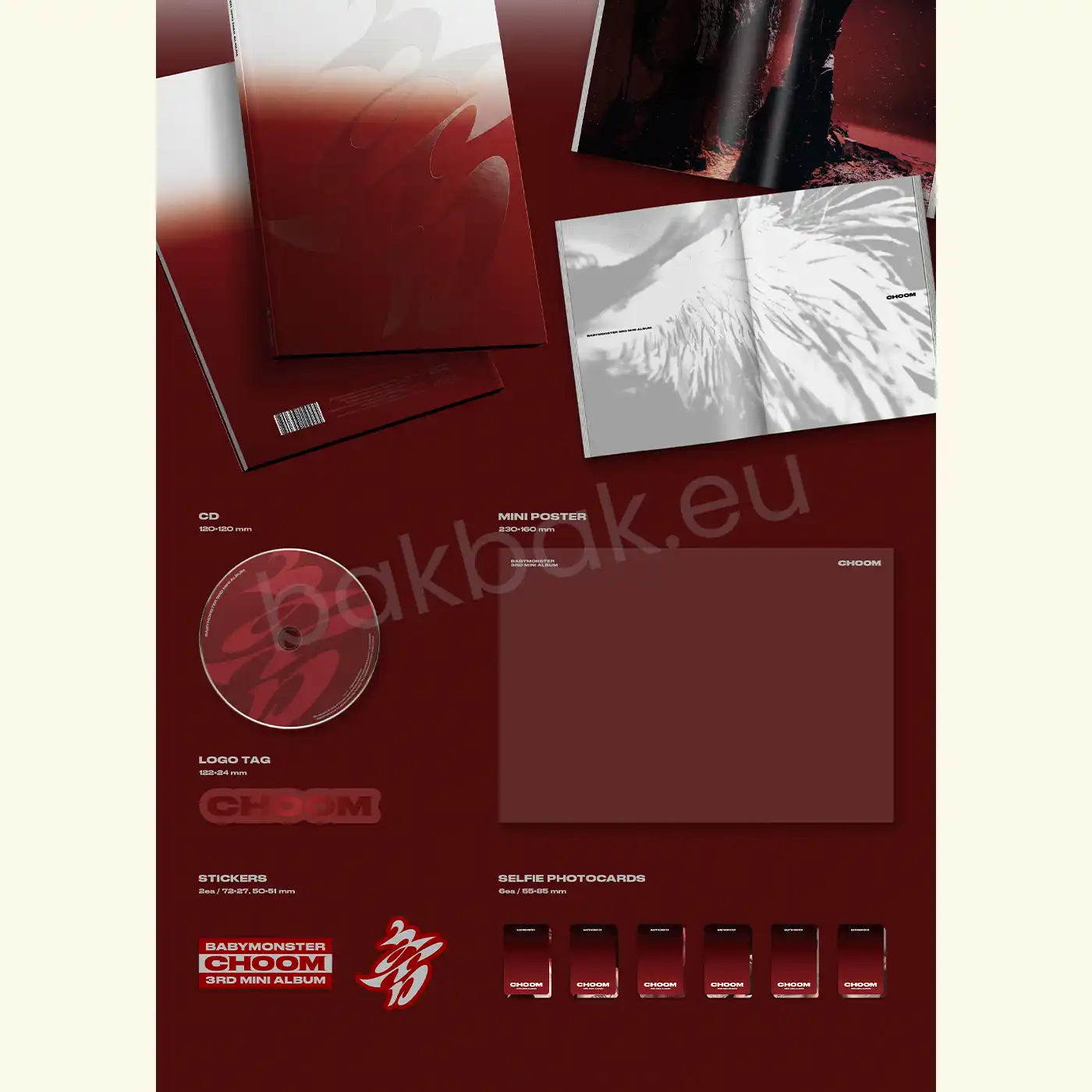 BABYMONSTER - CHOOM [3rd Mini Album] - Crimson Ver. (CHOOM) + BABYMONSTER - Limited Hologram Photocard (BABYMONS7ER Makestar POB) - Chiquita Holo PC