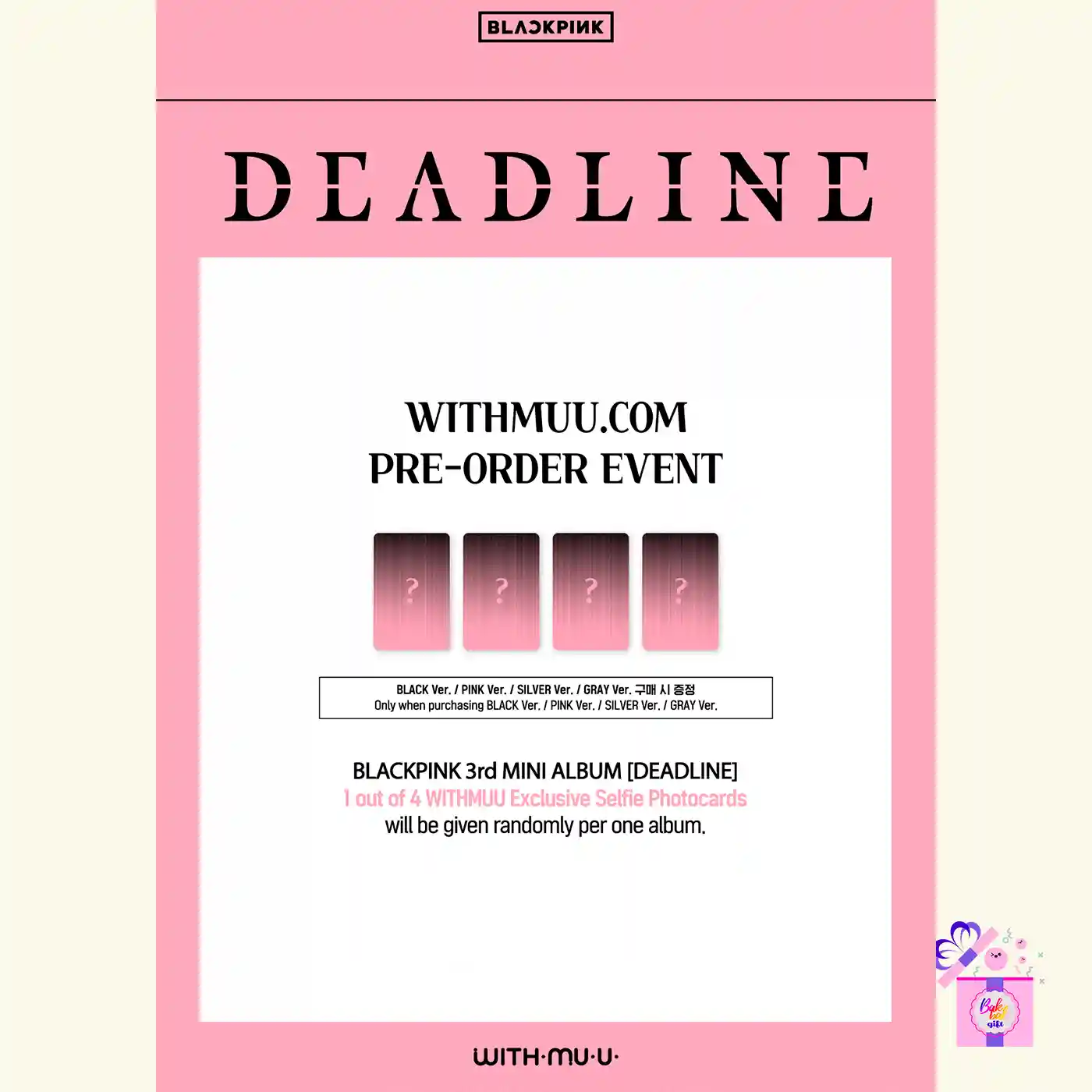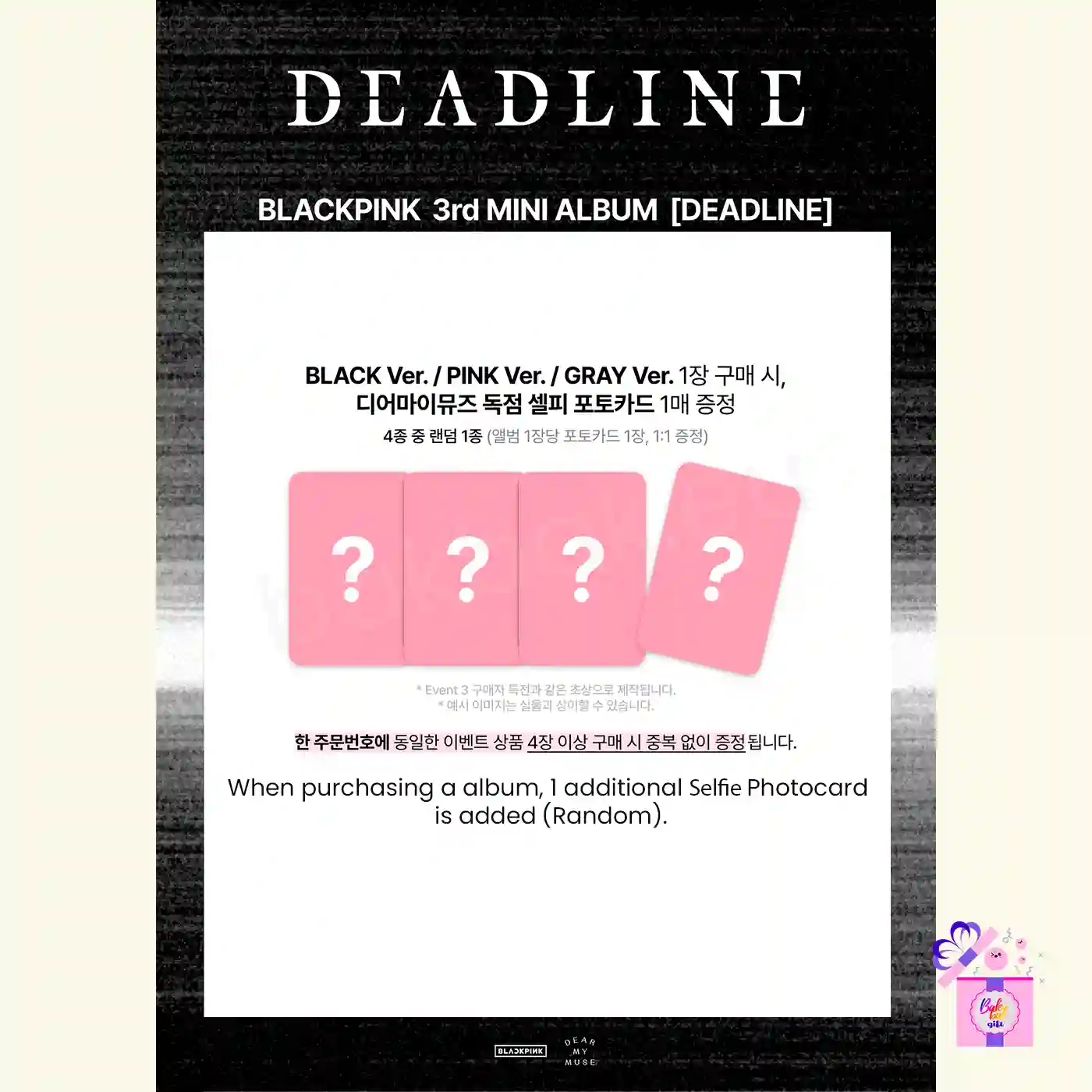 BLACKPINK - DEADLINE (GRAY Ver.) + Limited Photocards* [3rd Mini Album] - With WITHMUU Photocard + K-Pop Supply – Fluffy A5 Binder (Photocard Album HiSoCute) - Bear Binder