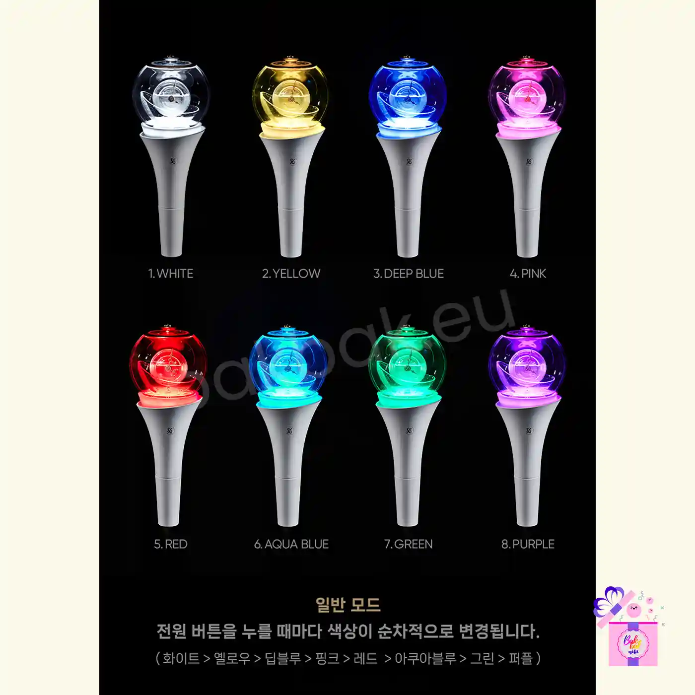 The light stick features multiple lighting modes, allowing sequential color changes through the power button, as well as a Bluetooth pairing mode, enabling synchronization during special events and performances.