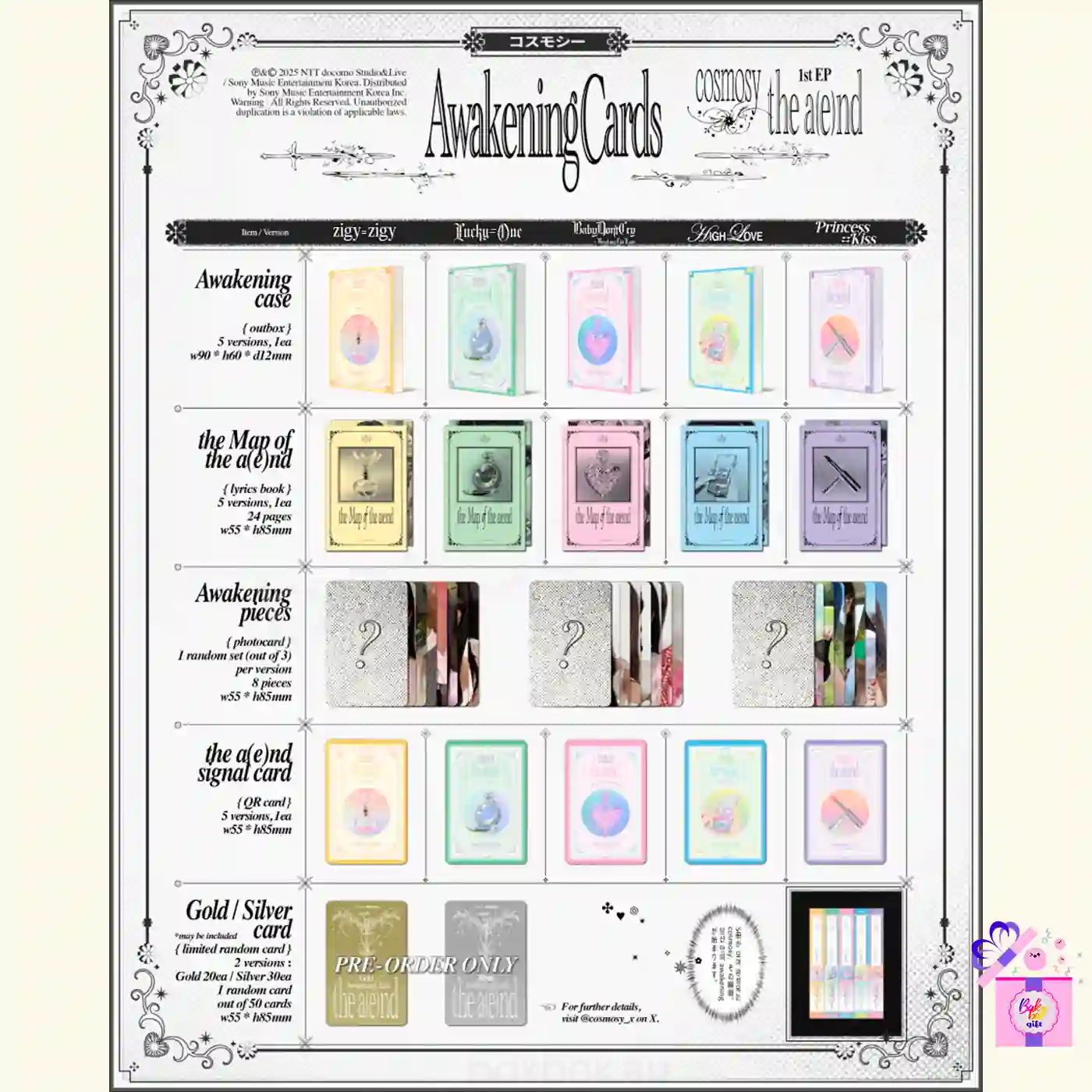 VersionBabyDon’tCry Ver. (the a(e)nd), HIGH=LOVE Ver. (the a(e)nd), Lucky=One Ver. (the a(e)nd), Princess=Kiss Ver. (the a(e)nd), Random Ver. (the a(e)nd), Set 5x Ver. (the a(e)nd), zigy=zigy Ver. (the a(e)nd)