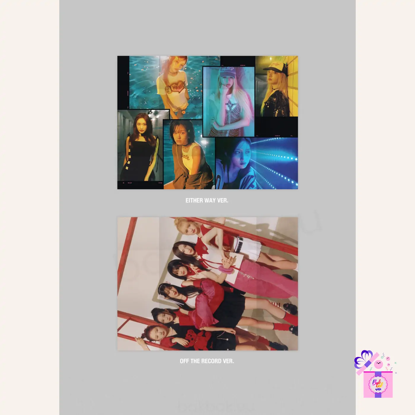 The physical album comes in eleven versions: four standard (EITHER WAY, OFF THE RECORD, BADDIE and LOVED IVE), six individual Member Digipack and one PLVE Ver.