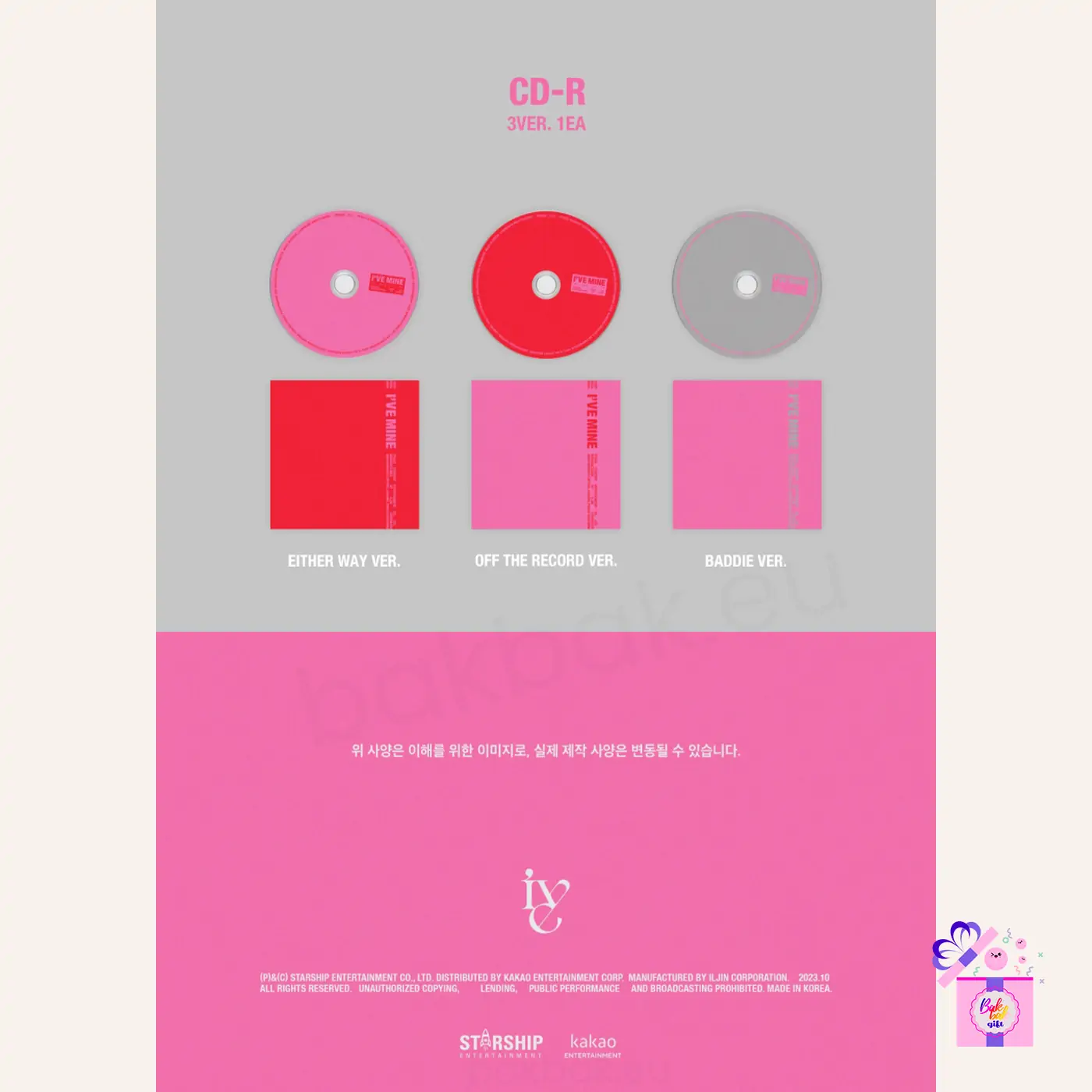 | Version | BADDIE [I’VE MINE LD], EITHER WAY [I’VE MINE LD], LOVED IVE [I’VE MINE LD], OFF THE RECORD [I’VE MINE LD], Random Ver. [I’VE MINE LD] |