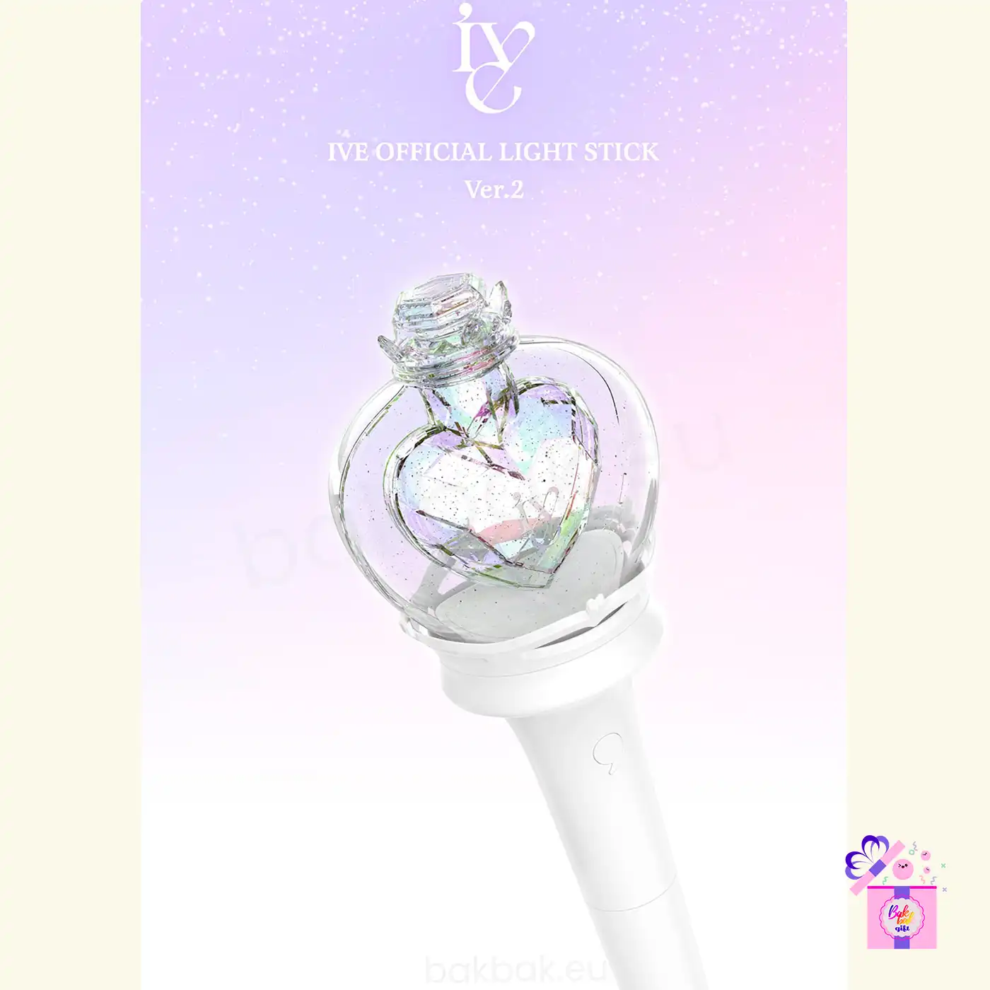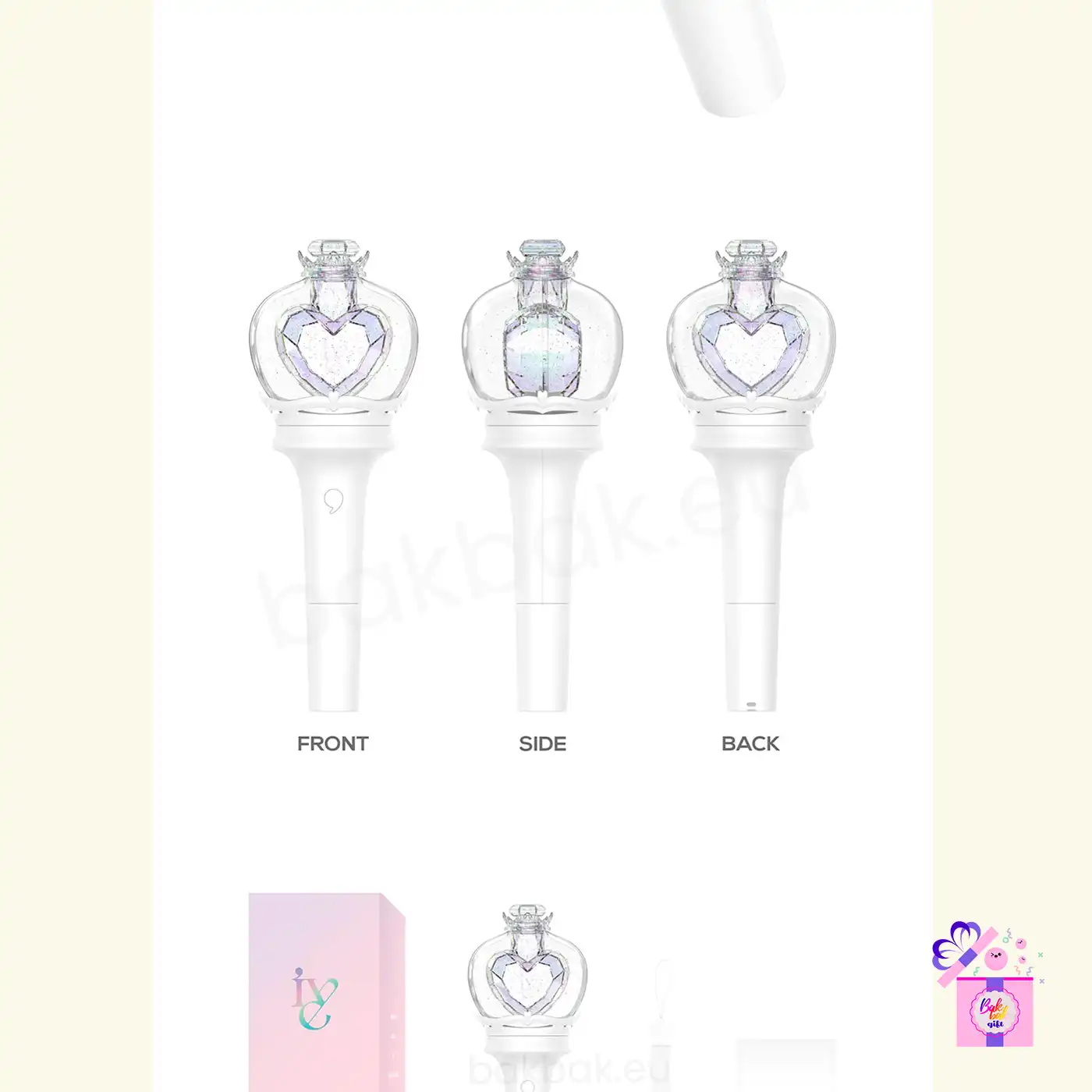 The IVE Official Light Stick (Ver. 2) is the official fan light stick designed to represent IVE’s elegant identity and connect fans during concerts and special events. Featuring a refined crown-shaped design with a crystal-clear globe and a heart inside, this light stick perfectly reflects IVE’s signature style—graceful, modern, and iconic.