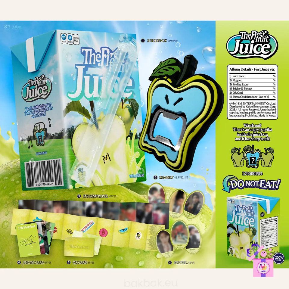 Mark (NCT) - The Firstfruit (1st Full Album) [First Juice Ver.] + K-Pop Supply - Photocard Binder A5 + Keychain Bak Bak (6 Ring Deco Pocket) - Eco Friendly Keyring Ver.