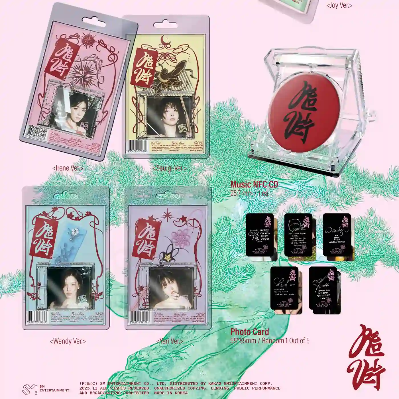 VersionIrene ver., Joy ver., Random SMini Ver. (1x Chill Kill), Set SMini Ver. (5x Chill Kill), Seulgi ver., Wendy ver., Yeri ver.
