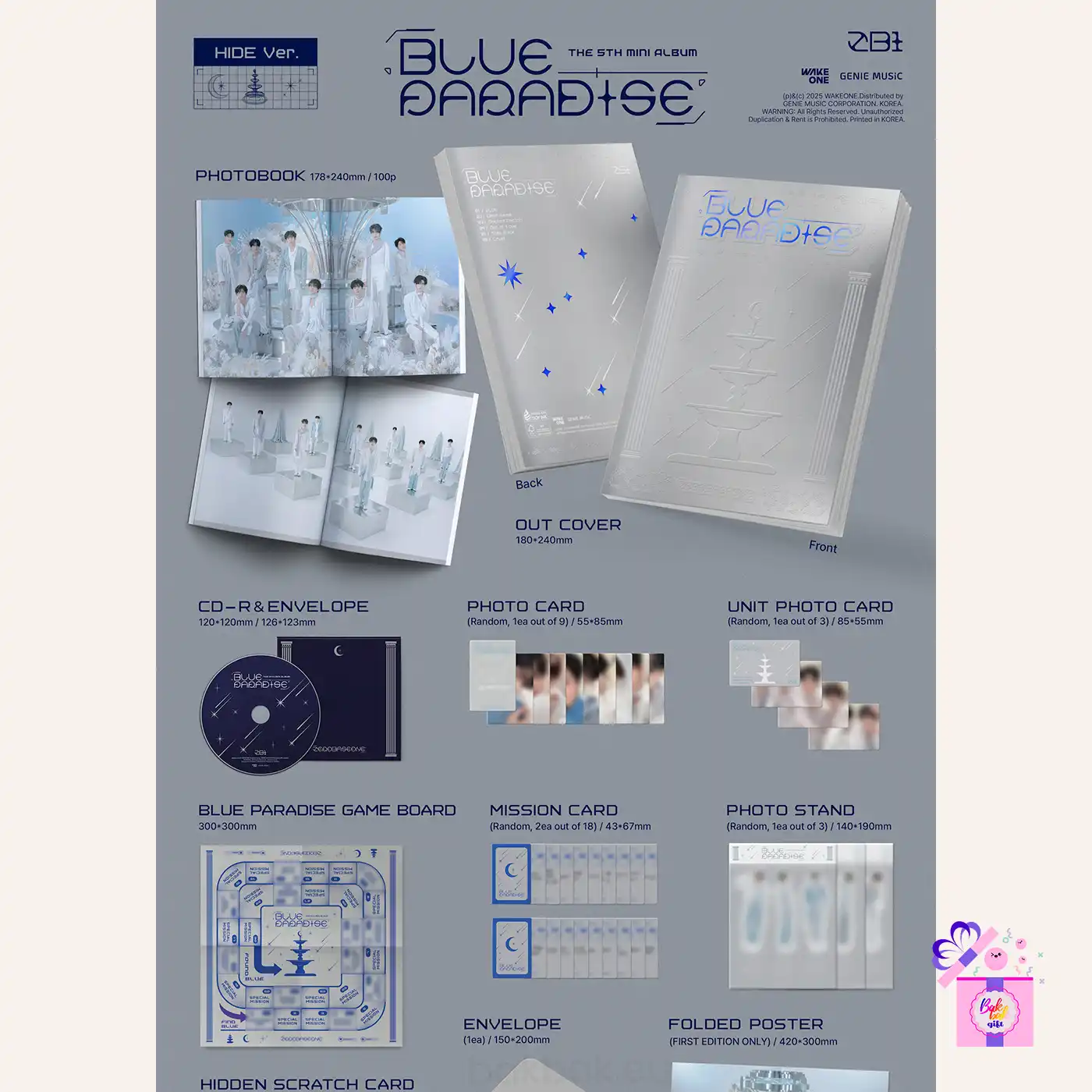 | Version | HIDE Ver. (BP), Random ver. (BLUE PARADISE), SEEK Ver. (BP), Set BP (HIDE+SEEK Ver.) |
