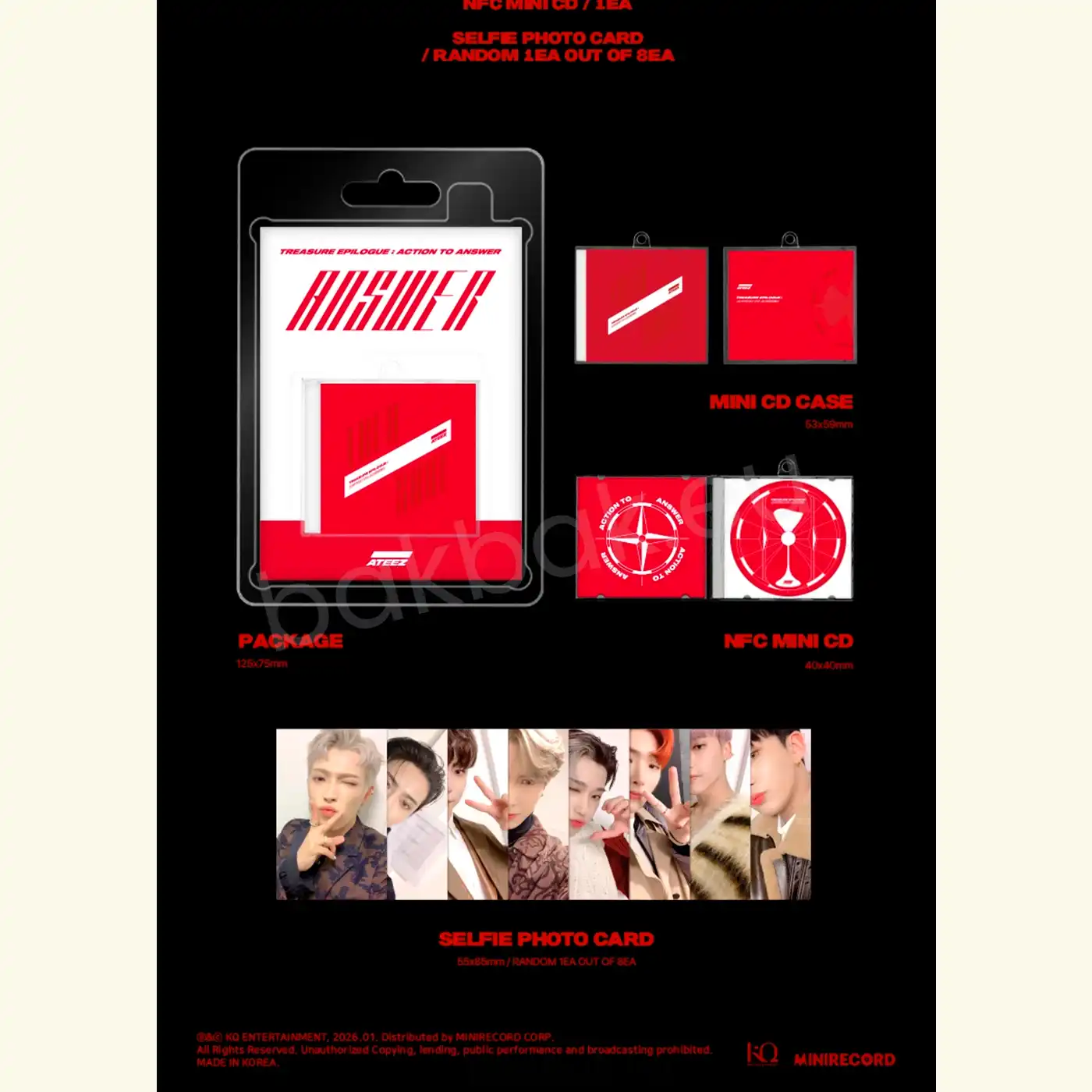 • 1x Selfie Photocard (55 × 85 mm / Random / Different per ver.)