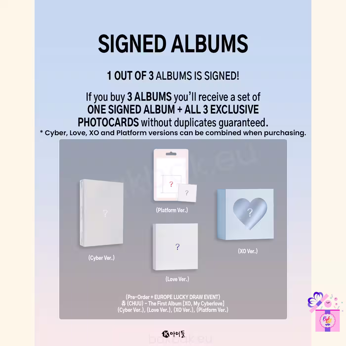 *Buy 3 albums and get ALL 3 EXCLUSIVE PHOTOCARDS without duplicates guaranteed.