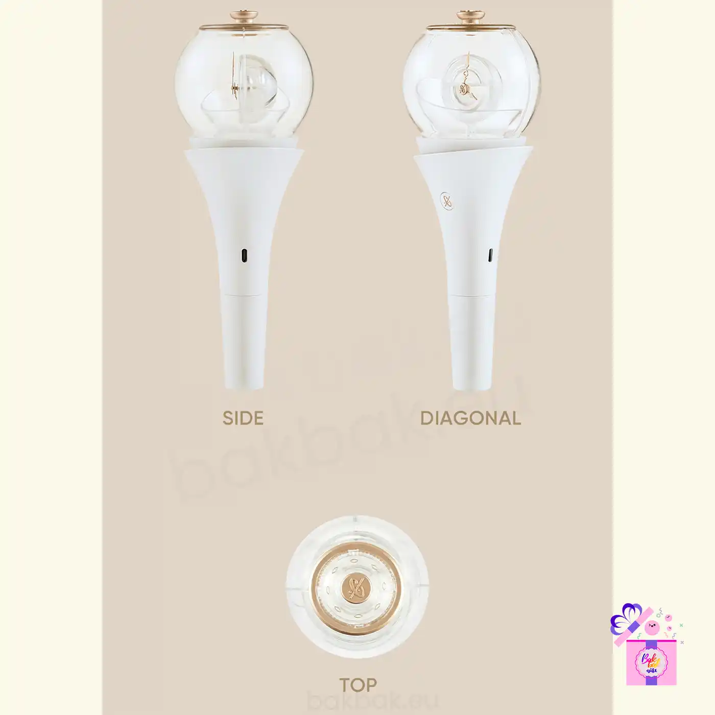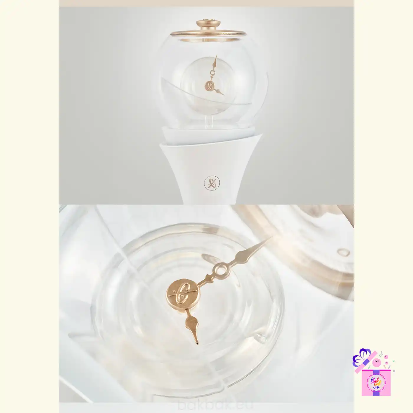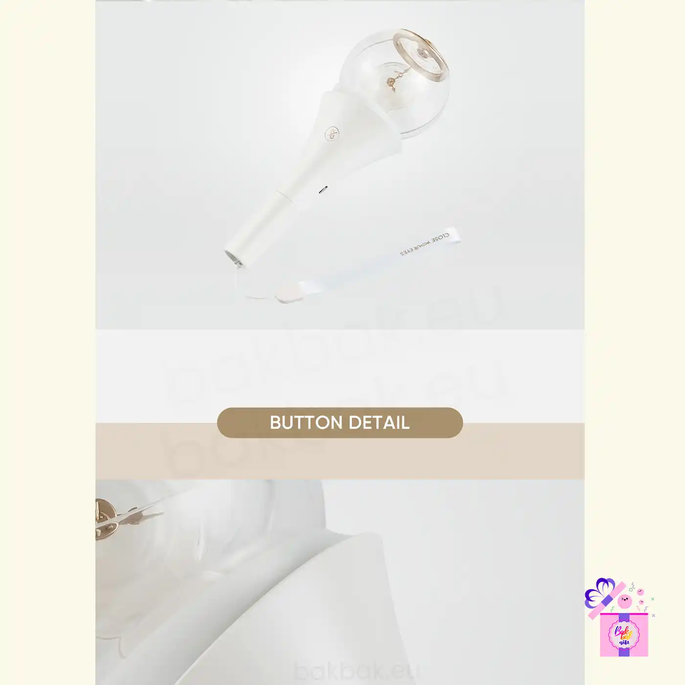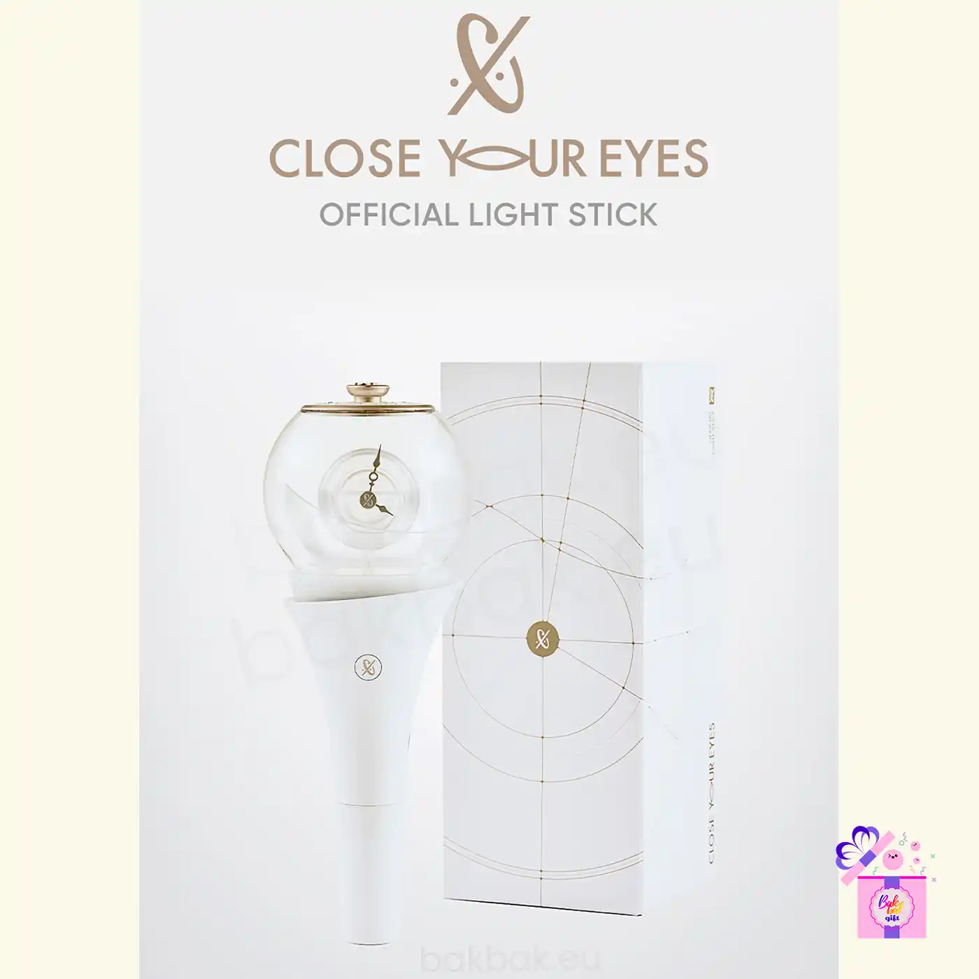 The CLOSE YOUR EYES Official Light Stick is the official cheering item for fans, designed with an elegant and sophisticated look that reflects the group’s identity. Its exclusive shape, combined with a translucent finish and gold-tone details, creates a modern and refined visual, making it ideal for both concerts and collection.