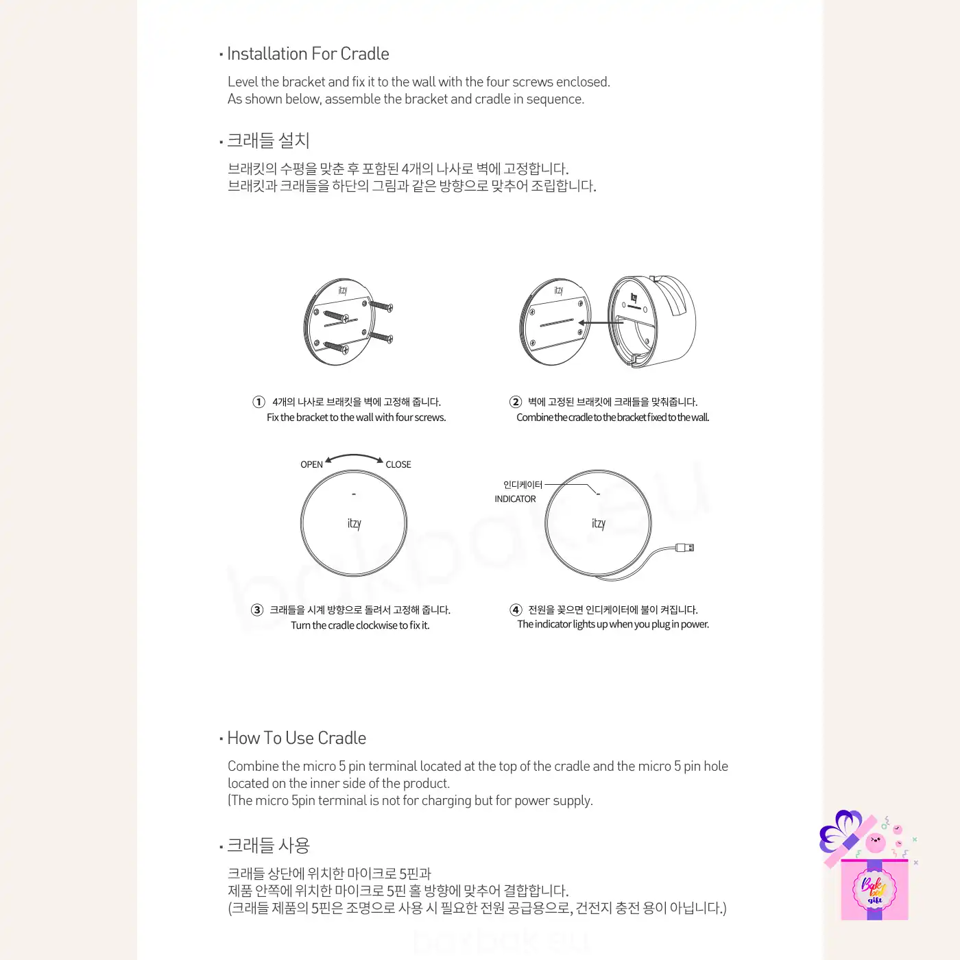 You can attach the cradle to the wall and combine the Light Ring to use it as a mood light.