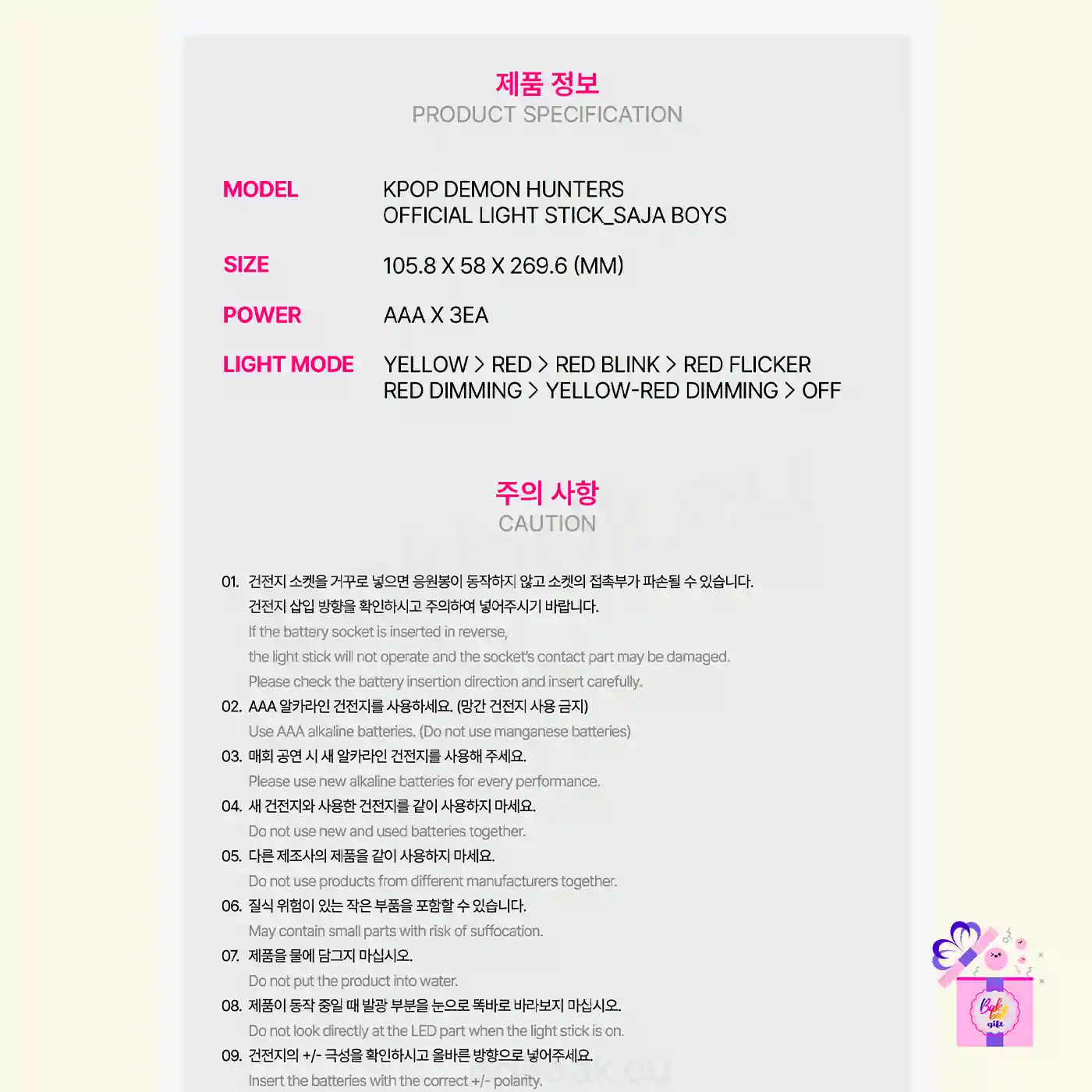 Compact and stylish, the light stick is built for both display and use at events, fan meetups, or viewing parties. As an iconic symbol of the KPop Demon Hunters lore, it makes a powerful statement of support and belonging in the fandom. It was released on November 24, 2025.