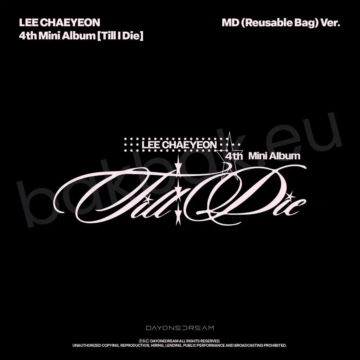 Lee Chaeyeon is a South Korean solo artist and former member of IZ*ONE, known for her powerful performances and versatile artistry. Till I Die is her 4th Mini Album — a work that captures her brightest moments on stage and the emotions within them, marking a new chapter as a more evolved artist. The physical release comes in two editions: the Archive Book Ver. reflecting the album’s diverse moods, and the MD (Reusable Bag) Ver. which symbolises her attitude and dedication as a performer.