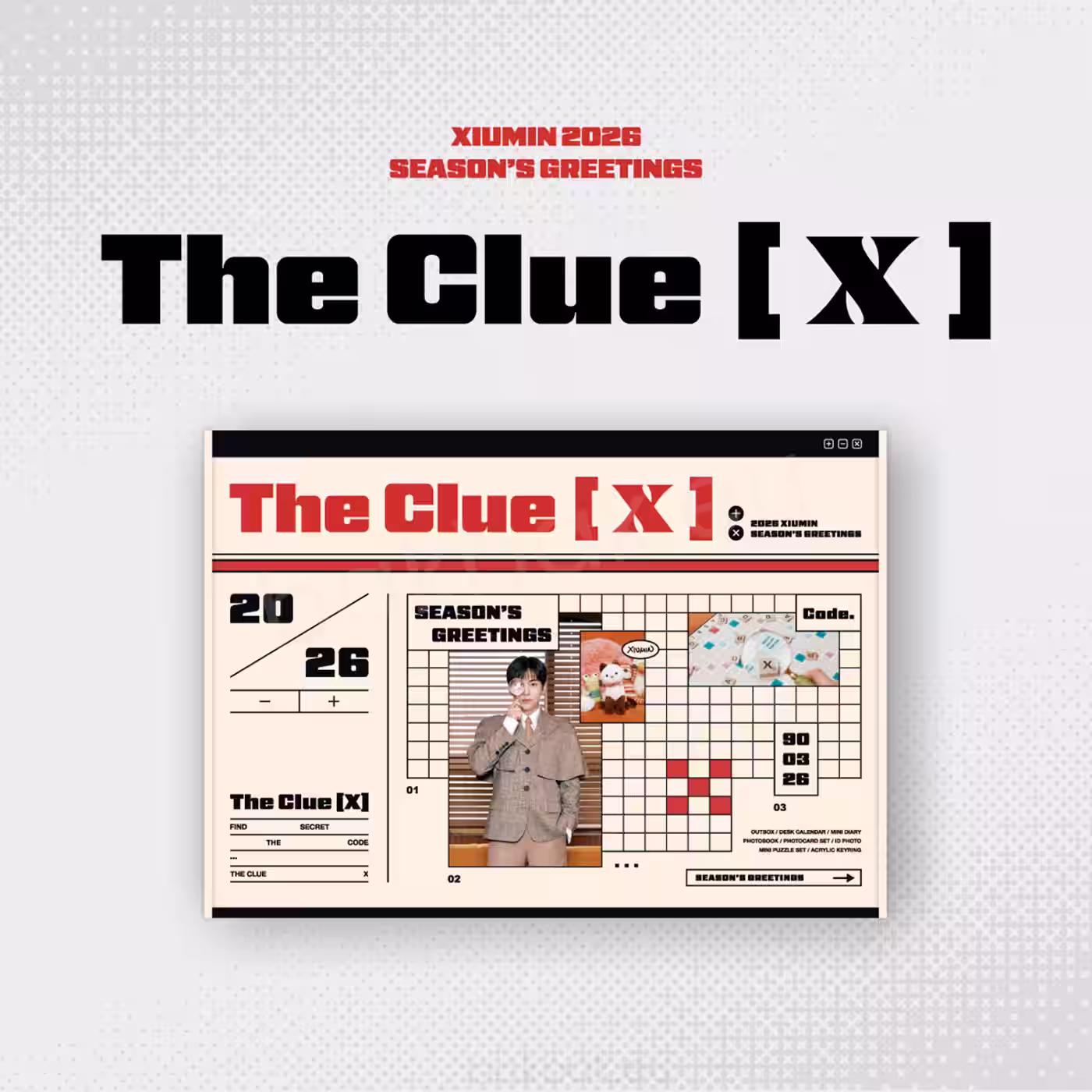 Step into XIUMIN’s mysterious and charming universe with The Clue [X] – 2026 Season’s Greetings, a collector’s edition designed for EXO-L who treasure warm aesthetics, playful storytelling, and exclusive artist-made content.