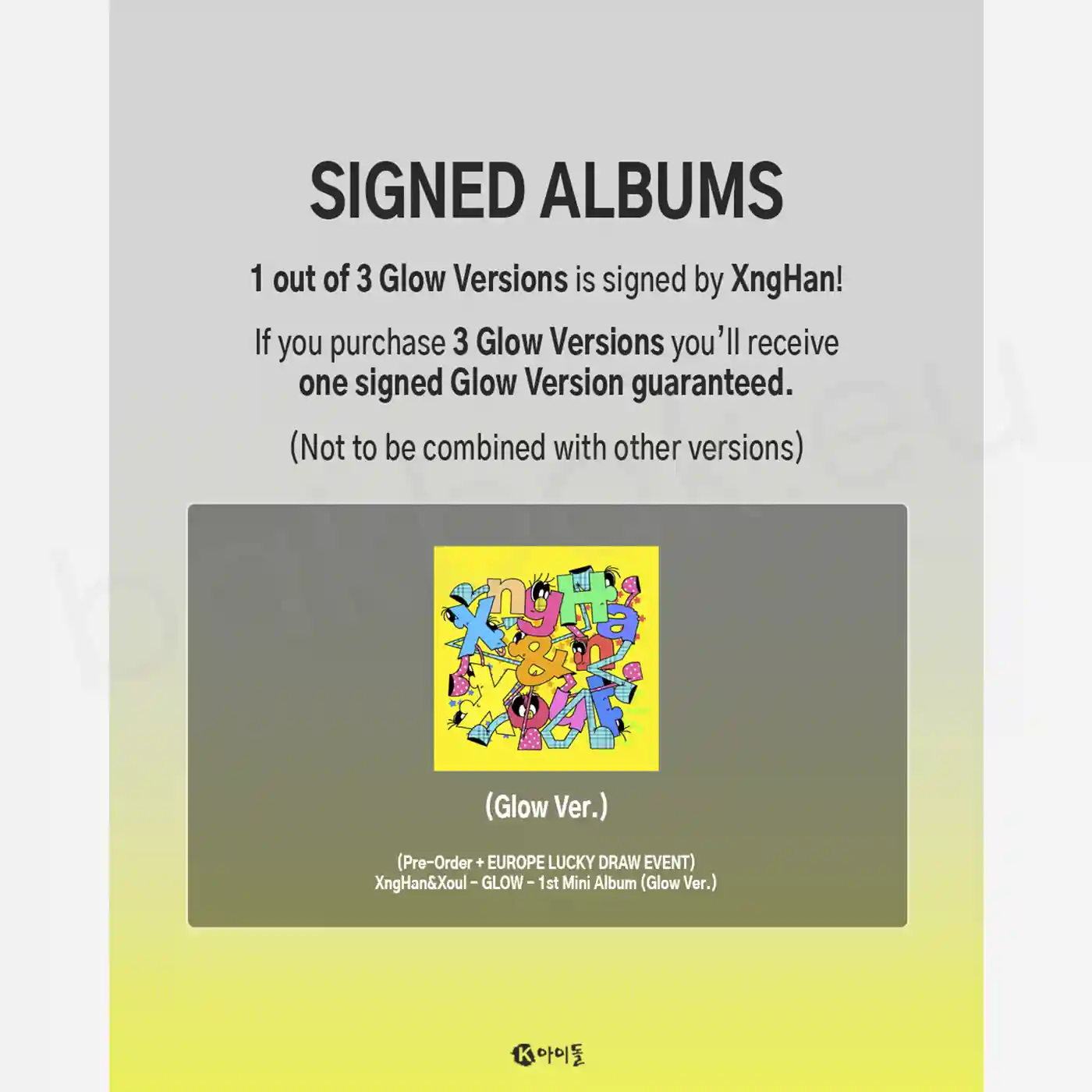 An essential addition for fans of XngHan and for K-pop collectors who appreciate debut mini albums from solo acts pushing the boundaries of the genre. Following the international success of his debut single “Waste No Time,” which topped iTunes charts in 12 regions, Glow marks the next major chapter for XngHan&Xoul.